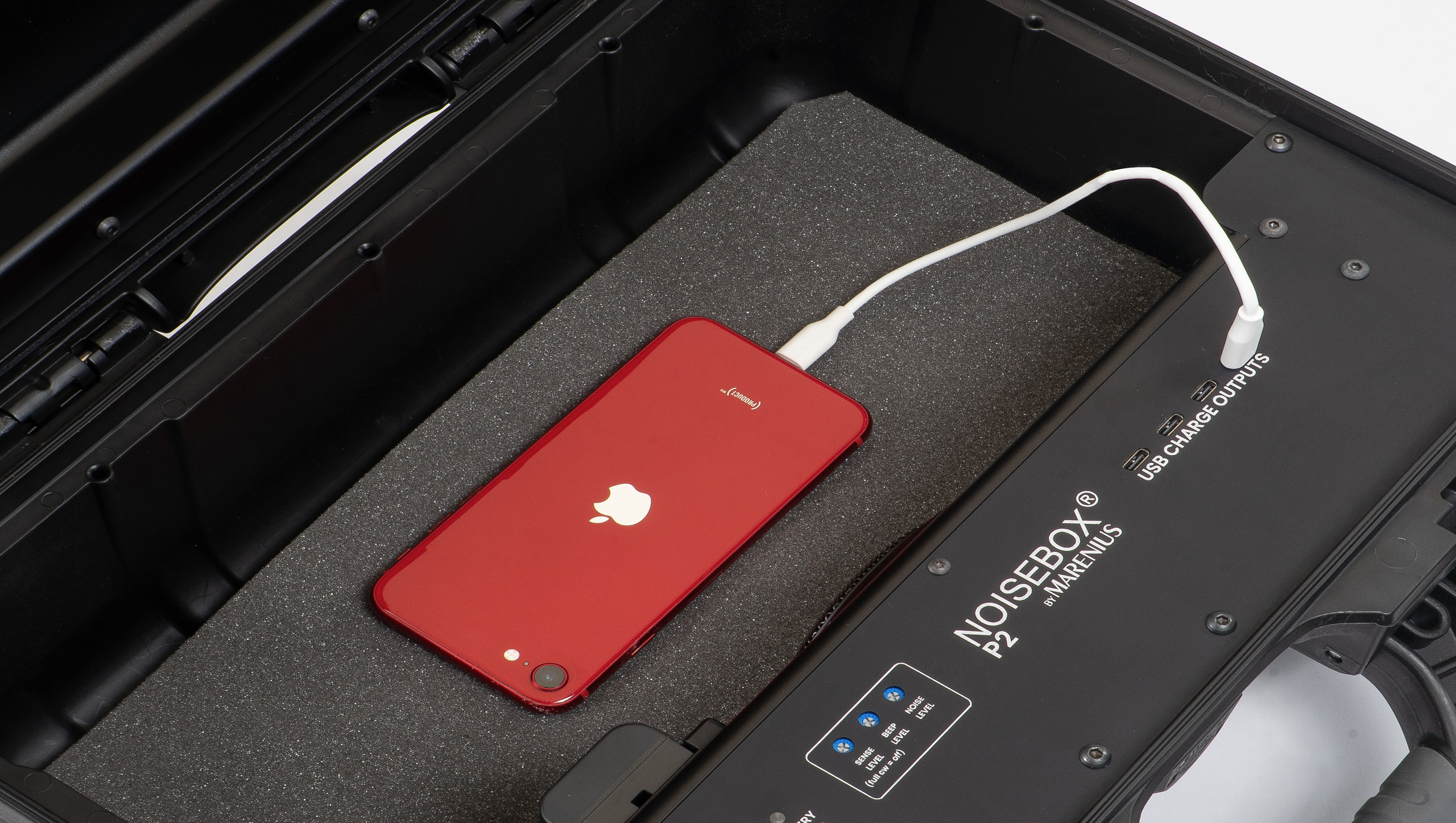 Varje smartphone, tablet eller laptop kan med en lämplig app användas för avlyssning av allt som dess mikrofon kan höra. Detta gäller även när enheten är placerad i viloläge. NoiseBox P2 löser problemet och skyddar enkelt ert möte från obehörig avlyssning, även om du behöver ha mobila möten där portabilitet är ett krav. Lägg alla enheter med mikrofon, som laptops eller mobiltelefoner i NoiseBox P2 och aktivera den. Om så önskas, koppla telefonerna eller surfplattorna till USB-C kontakter i NoiseBox för laddning.